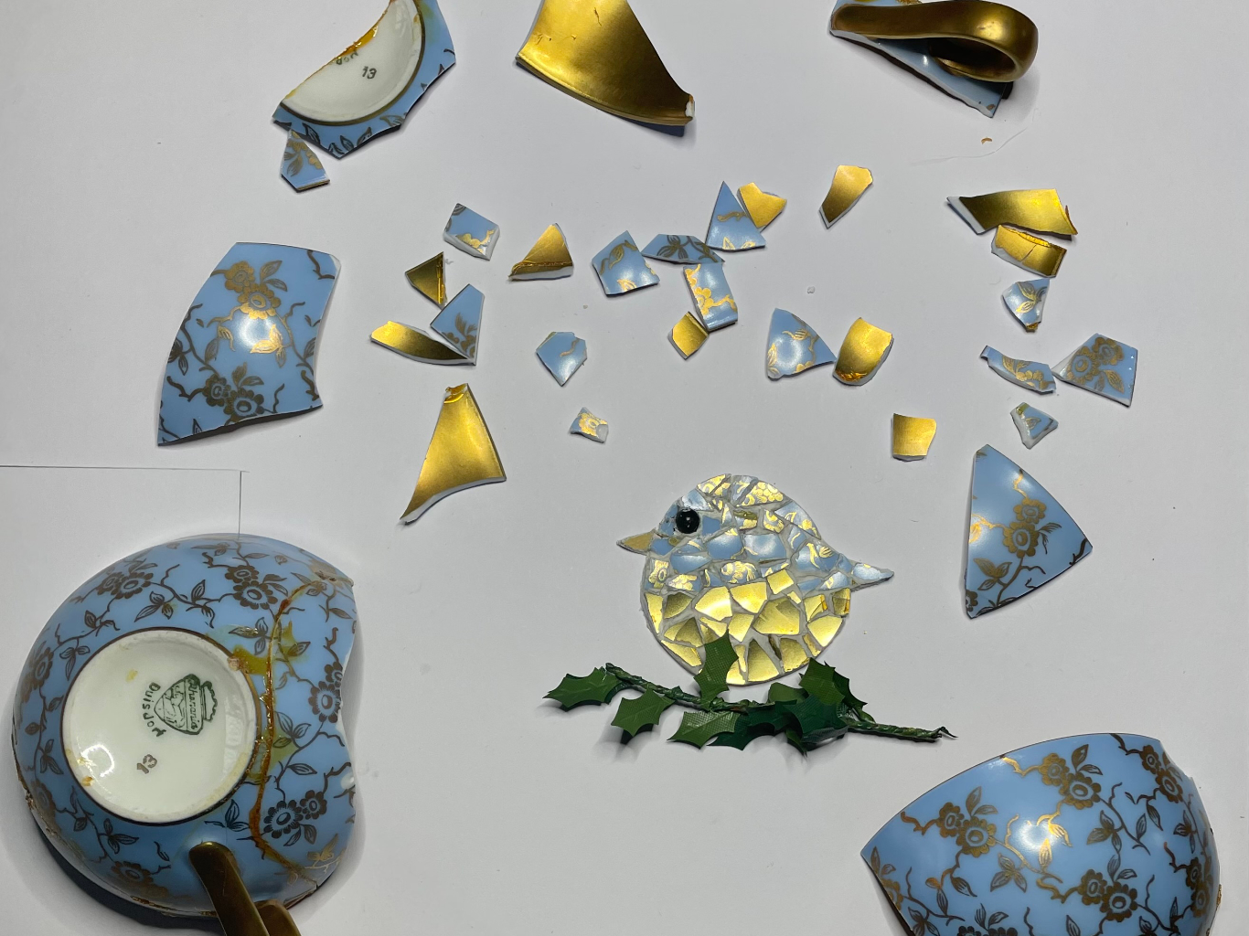 Michael takes up the story..."After a talk that I had given to the Ladybirds Women’s Club, I was shown a large vase that had been badly damaged whilst dusting. The vase had great sentimental value to its owner, and from it I was able to make several pieces for her, including two swallows, a jug, and some hearts. In helping to preserve memories associated with the vase, this has also kept another piece of broken crockery from landfill."